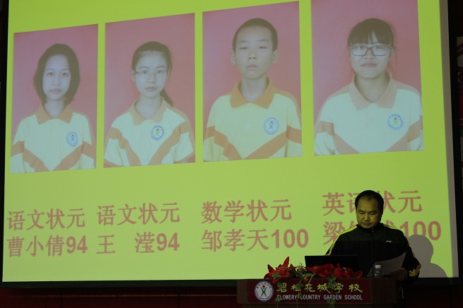 大会首先由王展鹏老师和欧阳晃增老师分别作七年级月考总结和八年级月考总结。两位老师宣布了本次月考年级总分前十六名、单科第一名及进步大学生名单,并从学生学习状态、取得成绩和改正不足等几个方面作了总结发言。
