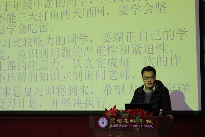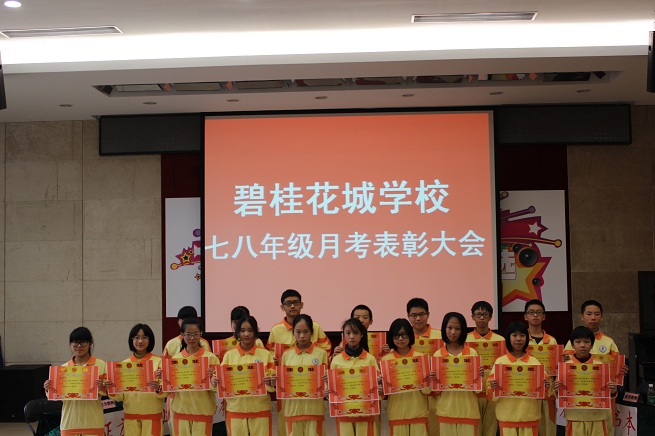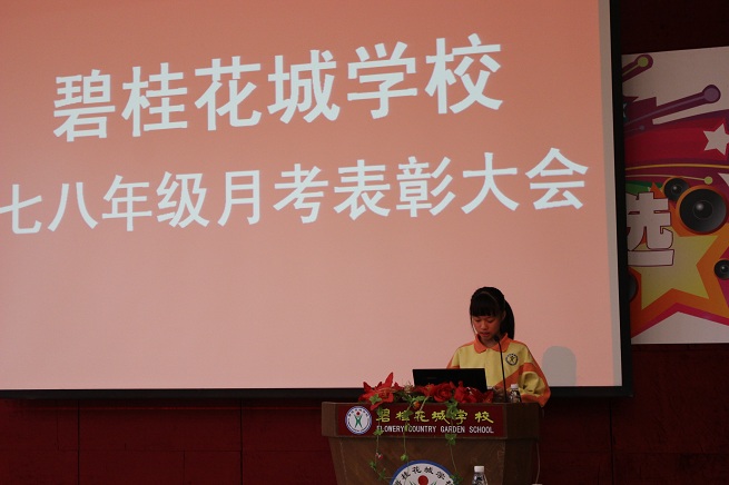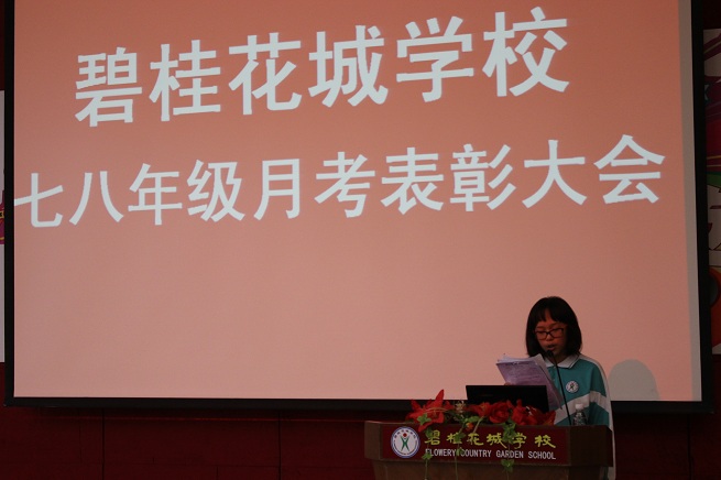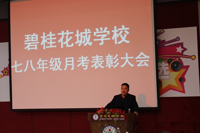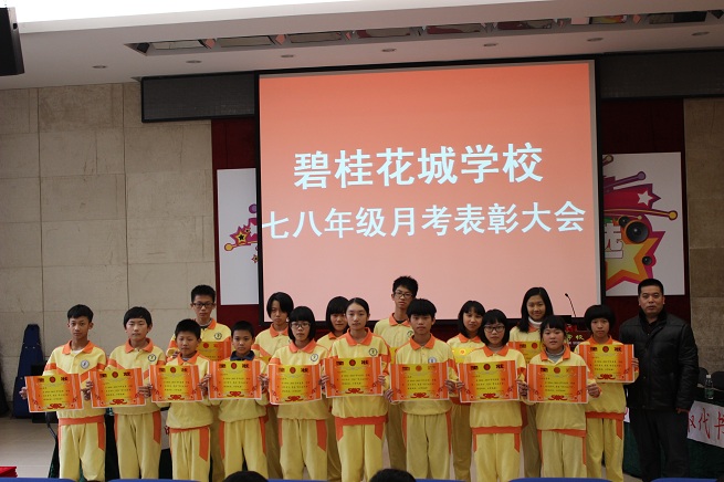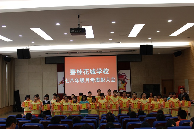 2014年12月19日,周五,下午2:30,一楼学术报告厅,碧桂花城学校七八年级全体师生济济一堂,举行月考表彰大会。会议由年级组长吉正军老师主持。