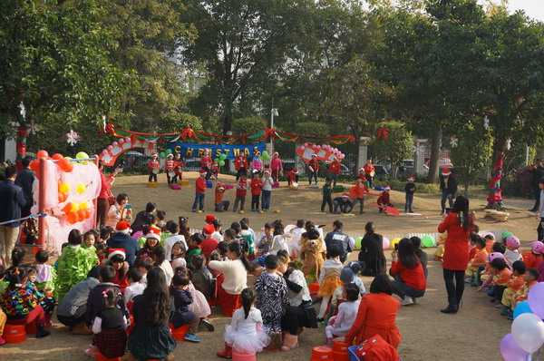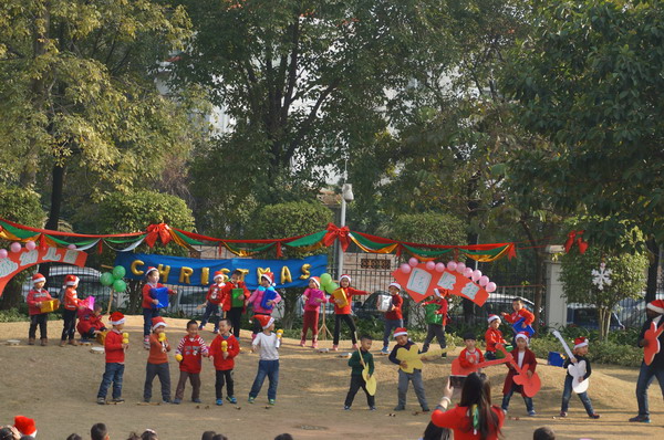 12月24日下午,国际班级组进行了别开生面的圣诞节欢庆活动。本次活动我们选择在草坪上进行户外圣诞表演,节目分为六个部分:英语剧表演,节奏表演,英语歌曲表演,韵律操表演,小模特表演以及舞动奇迹。