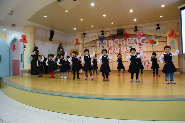 活动当天,幼儿园的每个角落都充满着浓郁的圣诞气氛,小班孩子穿着整齐的礼服,在布置温馨的小歌剧院里,上演精彩的演出。首先上场的是小三班的舞蹈《铃儿响叮当》,欢快的音乐感染着台上台下的孩子们。接下来小一班的合唱《泥娃娃》、小二班的歌舞表演《欢乐圣诞夜》、小三班的打击乐表演《Boy and girl》都获得在场观众的阵阵掌声。随后,小一班孩子带来了舞蹈《舞动圣诞》,可爱的舞姿、变化的队形,给大家留下深刻的印象,最后在小二班的大合唱《我是一条小青龙》的优美歌声中,结束了表演。
