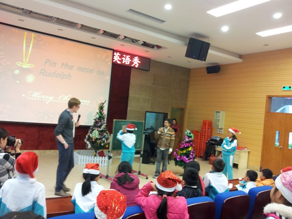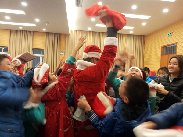 First, we sang Christmas songs likeRudolf,Santa Clause is coming to town and Christmas Tree.Then we played a game: pass the parcel. When the music starts, we passed the toy. When the music stopped, we stopped passing the toys. The one who got the toy get one sweets.
