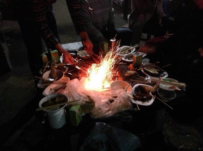 2014年12月26日晚,登州沙咀农庄竹林里欢歌笑语。碧桂花城学校五(3)班的师生和家长们齐聚一堂,举行了一场盛大的迎新年烧烤晚宴。
