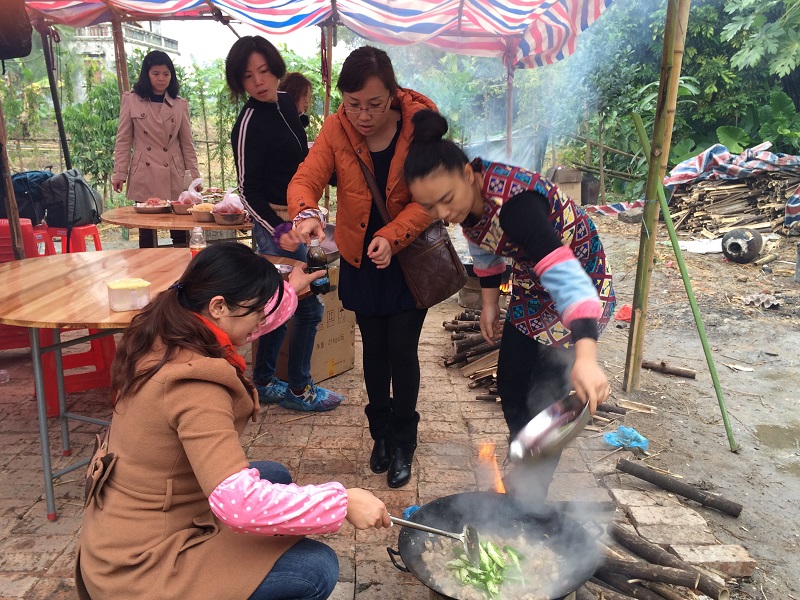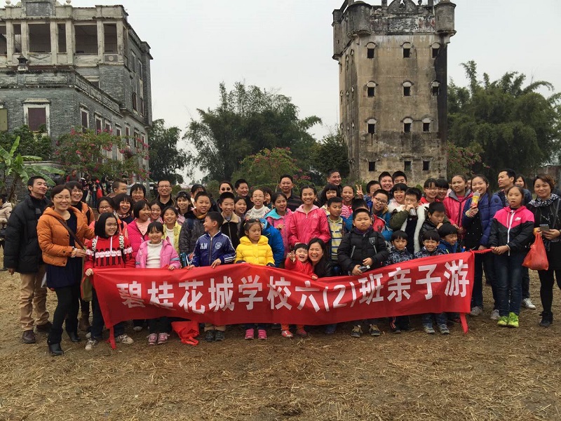 经过家委会三个多星期的筹备,“开平碉楼一日游”项目包含:参观荣桂坊碉楼、碉楼寻宝记、美食DIY、钓鱼活动、田园挖马蹄、观天下粮仓、趣味运动会。田园挖马蹄,一派热火朝天的景象,只见大大小小、老老少少挖的挖、翻的翻、找的找:有的孩子拼命把马蹄的草茎扒开;有的家长悉心指导孩子如何顺着根去寻找马蹄;有的大力士使劲儿刨坑,导游的话还在大家的回荡,马蹄越深越大越多。短短半个小时里,大家笑的笑、喊的喊:快来,这里有一大窝!最后在导游的一再催促中,大家拎着各自的收获依依不舍离开田园;美食DIY,家长们在烟熏火燎的阻挠下,又是咳嗽、又是揉眼睛,为了防止鸡肉烧焦、鸭肉变老,“大厨们”轮番上阵――这个妈妈冲上去翻炒几下,那个爸爸捂着鼻子撒盐,另一个妈妈勇敢地靠近倒酱油,大家群策群力,奋勇与浓烟作战,热闹非凡;趣味运动会,分别有孩子们、家长们的拔河比赛,拔河比赛让大家明白了“心往一处想、力往一起使”是取得胜利的法宝,孩子们还进行 “传输桂圆”团队游戏,在激动的游戏中,孩子们既收获了满满的快乐,又学会了团队协作的要领:互相谦让、互相帮助、互相体谅。