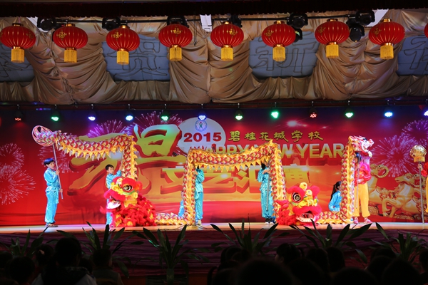 下午两点三十分,元旦文艺汇演在欢庆的“龙狮表演”中拉开了帷幕。首先,尊敬的贺校长作了热情洋溢的新年致辞,他满怀深情地回顾了本校在2014年各项工作中取得的骄人成绩,并对即将到来的2015年作出了展望。