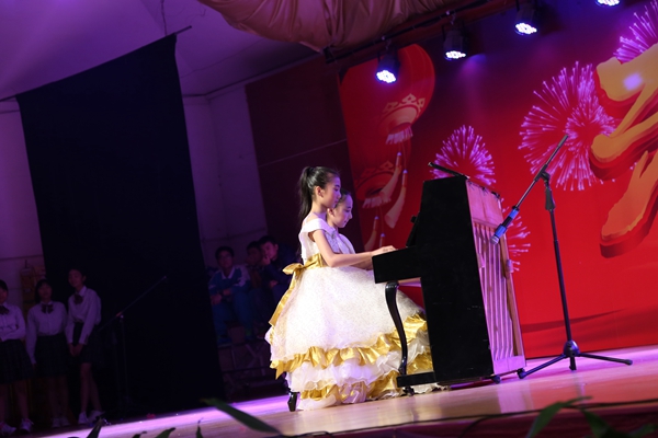本次文艺汇演节目共13个,内容丰富多样,精彩纷呈:既有活力四射的舞蹈,又有幽默风趣的小品,还有独具特色的舞台剧。同学们在舞台上尽情展现自我,张扬个性。伴随着节奏感十足的葫芦丝表演,《小苹果》把晚会现场推向了高潮,台上台下其乐融融,高潮迭起,洋溢着一片节日的温馨与快乐。