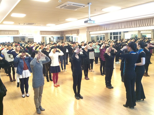 培训分为六大内容:微笑练习、站姿练习、坐姿练习、慢步与快步练习、鞠躬礼仪和道别礼仪。微笑是最好的社交通行证,是初次给予陌生人第一印象的关键,培训老师从眉毛、眼睛、脸颊,嘴唇来对我们进行讲解训练,以达到整体给人以亲切感觉的微笑。除了微笑,个人的体态也很重要,而且不良的习惯会危害脖子、肩周、后背的健康,塑造美好的形象,练就修长提拔的站姿显得尤其重要。通过学习,老师们了解了餐桌礼仪、接待礼仪、道别礼仪等专业知识,提升了个人素养。