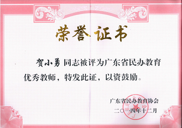 热烈祝贺碧桂花城学校贺小勇校长被评为广东省民办教育优秀教师!