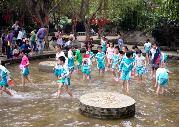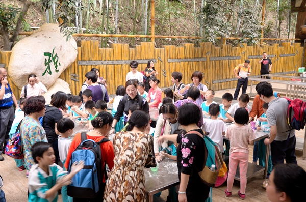 午饭后,大家在工作人员地指导下DIY“仙人掌酥饼”,接着大家又随着工作人员到瑰丽多彩的钟乳石的地下河和闪闪发亮、光彩夺目的水晶洞参观,还穿越有霸王龙、剑龙、翼龙、五爪金龙等等各种恐龙组成的恐龙世界;大家还每人亲手种下了一棵棵沉香树。最后大家带着在秦始皇考古乐园挖到的“兵马俑”、“青铜器”、“玉石”和捉到的可爱小鱼,同学们平安回到了可爱的学校。