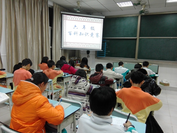 为了提高学生的综合素质,拓展视野,提前适应小升初考试的考题,六年级语文组于2014年12月8日晚在各班教室举办了一场百科知识竞赛。