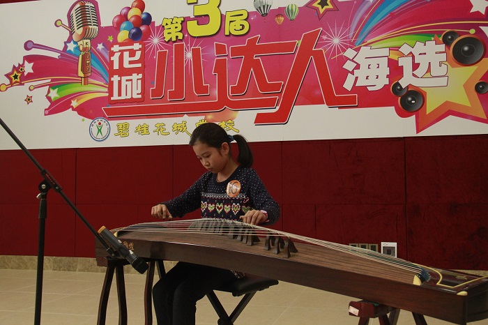 压轴的节目,由姚蓝同学带来一曲古筝独奏。婉转低沉的琴音,如靡靡之音,回响天际;似细雨打芭蕉,远听无声,静听犹在耳畔。在座的师生都不觉陶醉在这低调的琴声里。