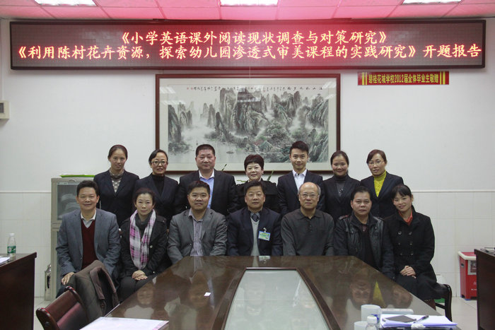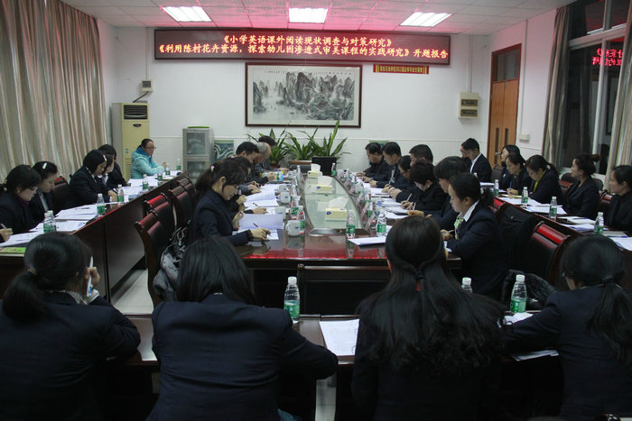 2014年12月18日下午,顺德区教育科学“十二五”规划课题――《小学英语课外阅读现状调查与对策研究》开题报告会,在碧桂花城学校会议室隆重召开。出席本次开题仪式的人员有:华南师范大学梁永丰教授、顺德区教育科研办公室张峰主任、顺德区教育局教研室教研员林盛山老师、陈村镇教育局罗伟棠副局长、陈村镇教育局教研室李学英主任等。