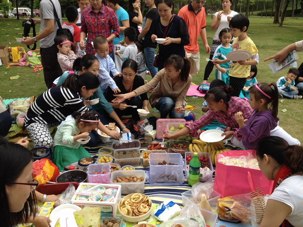 本次活动内容丰富多彩,其中有英语歌曲表演、各项亲子游戏,还有丰富美味的各种美食。活动在孩子们声色并茂的歌曲表演中拉开序幕,他们的出色表演让在场的每位家长纷纷鼓掌赞赏,紧跟其后的是各项亲子游戏,每组家庭积极参加,配合默契,现场加油声、欢呼声高涨,每组家庭都奋力向前,气氛时而紧张时而轻松,时而搞笑时而严肃。家长们的脸上洋溢着幸福的笑容。最后的环节是用餐时间,家长们拿出各自自制的各种美食,可谓色香味俱全,大家坐在草地上谈笑风生,在愉快的用餐中结束本次活动。