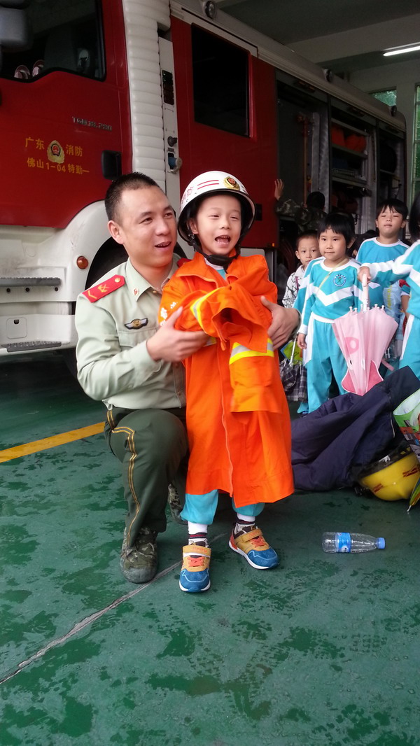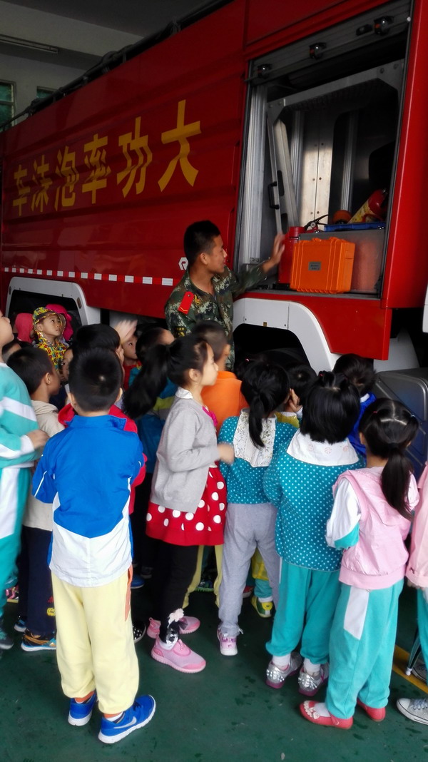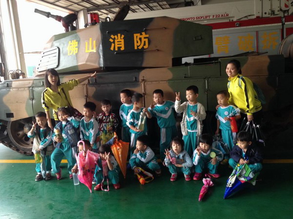 2014年11月6日早上,碧桂花城幼儿园中大班的幼儿到佛山市公安消防支队特勤中队参观,并受到消防员叔叔的热情接待。