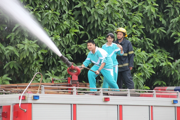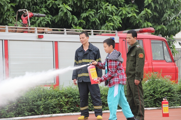 下午16:20分,随着警报声的响起,我校全体师生在赵主任的指挥下,各班班主任马上组织学生,迅速进入紧急疏散状态:现场班主任快速安排学生做好疏散前的准备;在老师的带领下,全体学生用湿毛巾、衣服等捂住口鼻有序撤出教室;楼层负责老师指明学生的疏散方向,并在楼梯拐角高声的提醒师生注意安全,以防踩踏事故的发生;按照逃生演练方案设定的逃生路线,迅速而有序地从教学楼各层、各班撤离到指定位置,没有出现拥挤、踩踏等安全事故……短短2分01秒,整个应急演练活动规范、有序、紧凑、安全、高效,老师和同学们临危不乱,组织有序,逃生时没有发生拥挤、踩踏和碰伤学生的事故。演练过后,曾警官总结了此次演练的得失,进一步强化了在校师生的消防安全意识,提高了火灾防控以及对突发事件的应变能力。曾警官还现场演示了灭火器如何使用的操作程序,并让部分学生亲自体会了使用灭火器的过程,使全体师生们掌握了正确使用灭火器的操作方法。