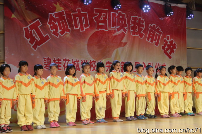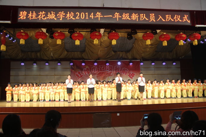 2014年11月14日下午4:20,碧桂花城学校新队员入队仪式在综合馆隆重举行。一、三年级全体师生参加了此次活动,一年级四个班的家长见证了这个光荣而神圣的时刻!