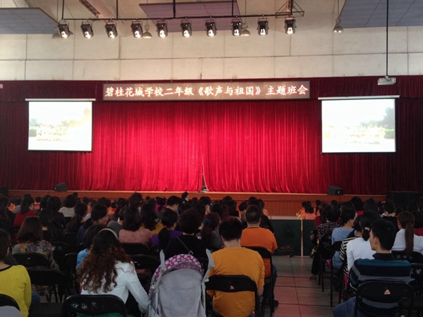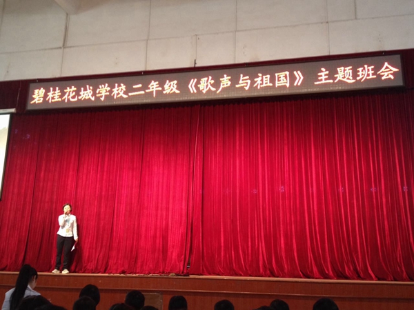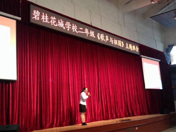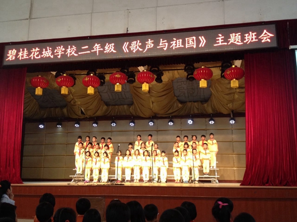 2014年11月21日,在碧桂花城学校的综合馆,二年级全体同学上了一节别开生面的班会课。本次班会以“歌声与祖国”为主题。二(1)班的《井冈山下种南瓜》向孩子们讲述了在革命时期,虽然红军叔叔生活条件艰苦,但也动摇不了他们必胜的革命信念,他们在井冈山上顽强的与敌人斗争;二(3)班的《共产儿童团歌》向孩子们讲述了儿童团员在革命时期的重要作用,今天他们在这里高唱这首歌曲,想让它成为一代又一代少年儿童成长过程中牢记的责任、培养的情操、追求的理想、坚定的信仰,永远铭刻在中国的少年儿童心中;二(4)班的《学习雷锋好榜样》向我们讲述了雷锋的故事,更是希望孩子们能传承雷锋精神,让社会因我们的存在而变得更加的美好;最后二(2)的孩子们唱响了《快乐的节日》,与大家分享了今天的幸福生活。