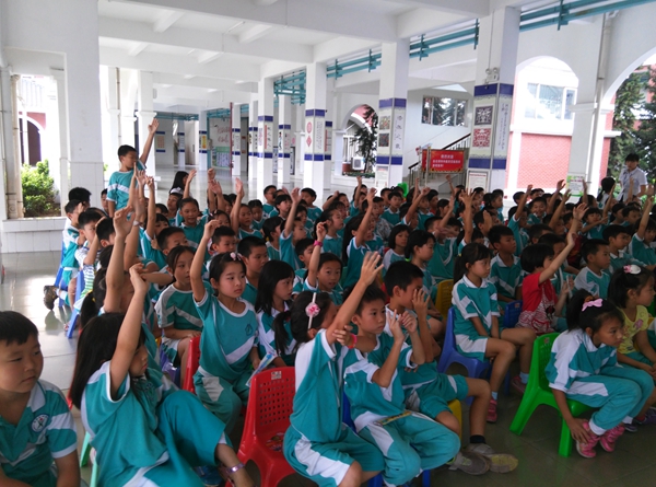 让我们一起来看看孩子们的快乐吧:这里有孩子们最喜欢的游戏“Lucky number”,有“Question time”问答环节,和另孩子们激动不已的“Sharp eyes”、“Riddles”等。丰富的奖品吸引着孩子们争先恐后地回答老师的问题,得到鼓励的孩子更增加了对英语的自信心。孩子们个个跃跃欲试,谁也不甘落后。看“Thailand ”“Malaysia”国家的国旗他们都能一眼认出来,是不是很厉害呢?