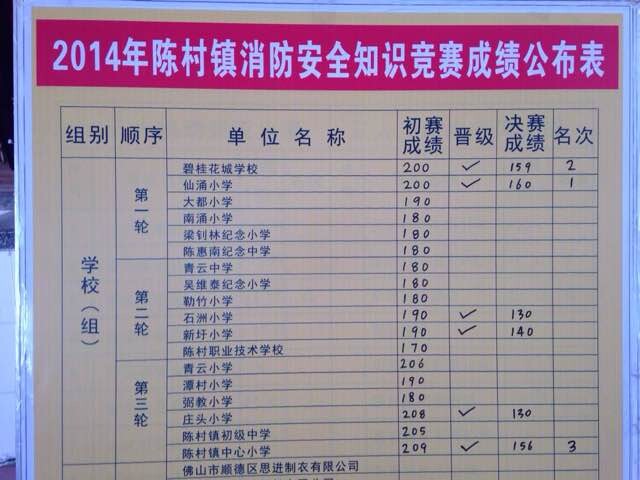 为充分调动群众关注、参与、支持消防工作的积极性,加大消防宣传教育普及力度,全面提高群众消防安全意识和技能,10月16日,陈村镇消防安全知识竞赛在陈村镇陈惠南中学大礼堂举行。此次活动中学校组与企业组分组比赛。