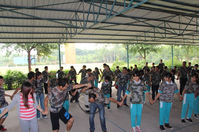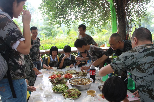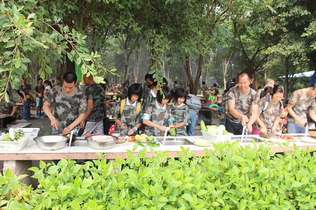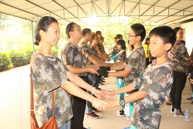 到了基地里,同学们都不约而同地小声说:“好像军训啊,又要穿上迷彩服了!”家长们也议论纷纷的说:“哇,岂不是要累死咯!”作为亲子活动,每个项目肯定都是要和自己的父母一起完成的,我们总是要上学,父母总是要上班,和父母都很少了解沟通,这就是本次活动的主题。