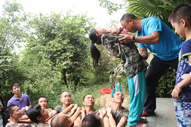 小游戏过后,到了更加刺激的游戏“信任背摔”,由父母们用手臂搭起支柱,我们信任父母,大胆地背过身摔下去。由于我的高度,我往后面看会更高更恐怖,离地面的距离自然会觉得很远,我也怕自己太重会给下面的家长带来负担。我深吸一口气,慢慢的倒了下去,倒在家长们的手臂上时,我深呼了一口气。