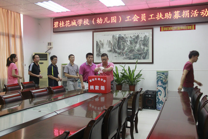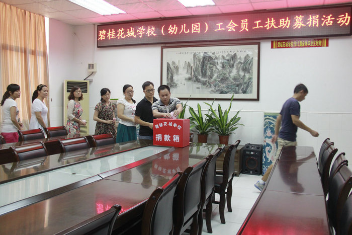近期学校工会得知该教师还需进一步住院治疗,而且高昂的治疗费用让这个原本幸福的家庭陷入了困境,校工会向全校教职工发出倡议,于10月21日下午举行了简短的捐赠仪式,得到了全体教职员工包括后勤员工的积极响应,纷纷伸出援助之手,慨慷解囊,希望尽我们的微薄之力帮助该老师渡过难关,最重要的是希望她能感受到我们花城学校是相亲相爱的一个大家庭,并鼓起勇气战胜病魔。