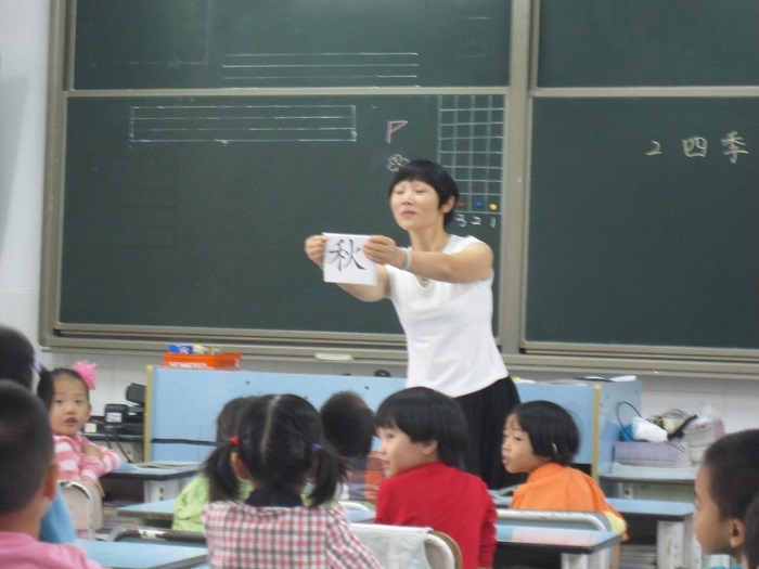 一年级学生的注意力相对是比较短,课堂上坐不了几分钟就想动。焦老师的课堂让学生动了起来,让学生在动中学习。这节课让学生动起来的机会是挺多的。讲“春天”这一部分时老师让学生动手做做“尖尖”的形状配合朗读。学生自主学习“夏、秋、冬”这三部分内容时,先让学生在小组里朗读,表演。反馈的时候找小组组员一起到前面表演读,表演“圆圆、鞠躬、大肚子一挺”等动作,学生大胆的表演引起阵阵欢乐的笑声,同学们也在笑声中掌握了知识,理解了语言,感悟了语言的精确和美。