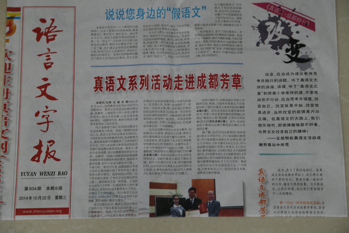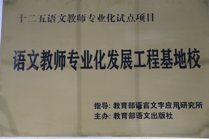 2014年全国“语文教师专业化发展工程基地校”评选工作已落下帷幕。这次评选,全国共有28家学校获此殊荣,我校因语文教师专业化建设表现突出, 荣膺此称号,“教育部语言文字应用研究所”以及“教育部语文出版社”为我校颁发了牌匾和证书。