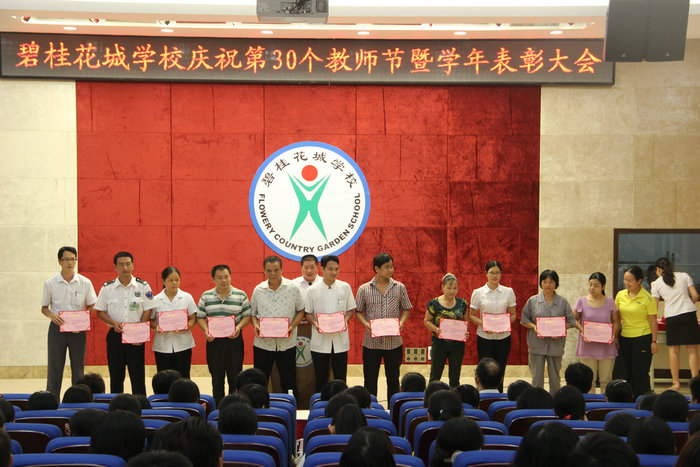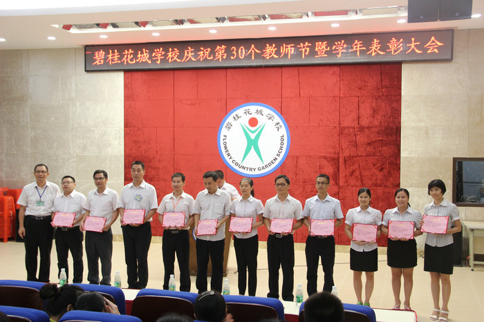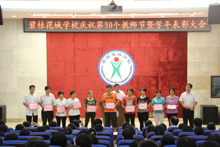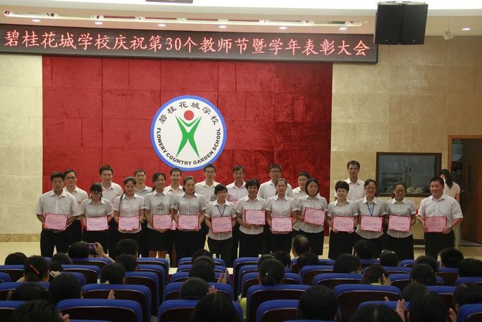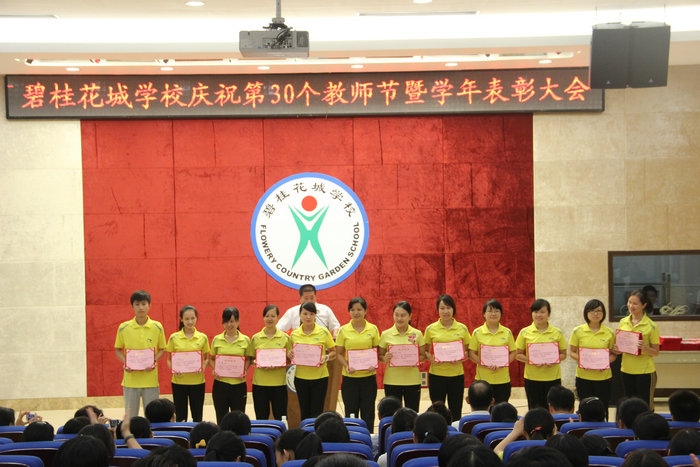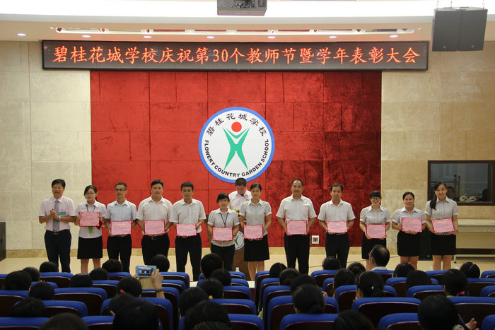 老师,是美的耕耘者,美的播种者。是老师用美的阳光普照,用美的雨露滋润,孩子们的心田才绿草如茵,繁花似锦。在今天这个特殊的日子里,校长助理谭家文先生宣读了过去一年默默耕耘的优秀教师名单,学校领导依次为大家颁发了荣誉证书。贺校长也饱含激情地向全体教职员工做了新学年的致辞:“碧桂花城学校在所有老师地努力奋斗下一起走过了11年,在过去的岁月里,我们有过太多地荣誉和骄傲,但是面向未来,我们仍然要与时俱进,不断创新!”