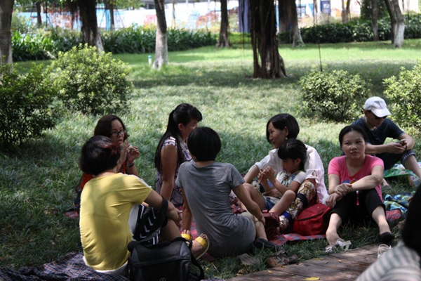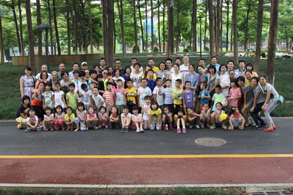 我们把地点选在了风景优美的佛山公园,各位家长都拿出了别具一格的自制食品。同学们玩啊、吃啊,特别开心;家长之间先互相认识,再在一起探讨育儿经,大家都受益良多。