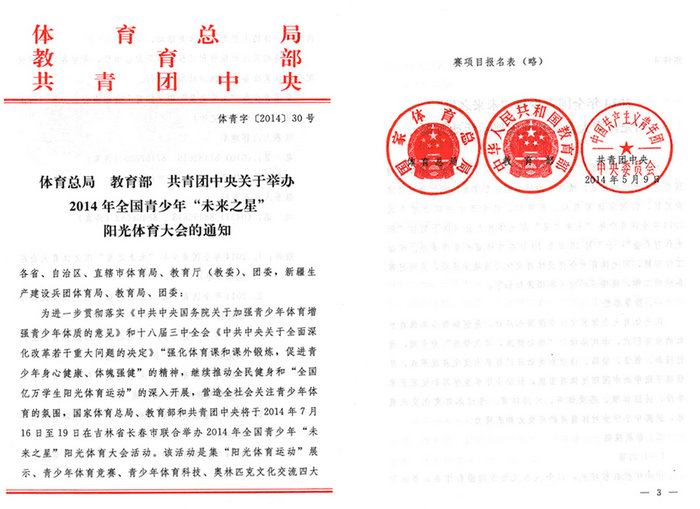 近日,由国家体育总局、教育部、共青团中央共同主办,长春市人民政府、吉林省体育局承办的2014年全国青少年“未来之星”阳光体育大会暨文化交流活动在吉林省长春市圆满落幕。