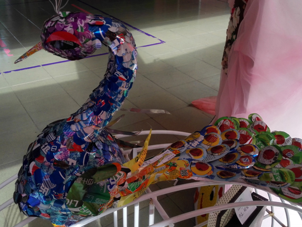 老师们一一上台展示自己的手工作品,作品种类繁多。何卓凡老师带来了自己的刺绣作品,可谓是精美绝伦。武佩佩老师带来的作品则是由贝壳粘黏而成的小房子,也是相当精致。看,这只惟妙惟肖的“孔雀开屏”是由梁淑芬老师用易拉罐剪成一张张的小片粘成的,还有我们的保育员老师也用一双巧手做出了各种精致的作品:相框,花篮,植物粘贴画……。本次展示活动的手工作品全是由老师们利用暑假时间完成,老师们精心准备,认真制作,花费了大量的心思,所以才会有这么多精美的作品。