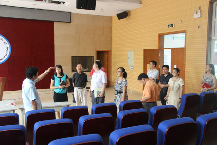 接下来,在二楼会议室,贺校长就开学工作向来宾做了全面的汇报,包括暑假夏令营、学校工程建设、新教师培训、百名教师进千家和花城大讲堂等活动。并就本学期在德育、教学等方面的计划也做了详尽的阐述。