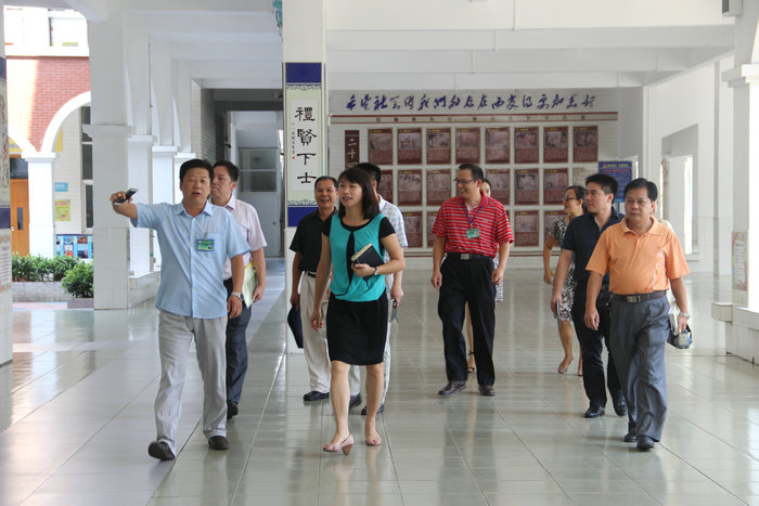 2014年9月18日下午,在陈村镇党委委员、教育局局长梁淑艳女士的带领下,镇教育局一行8人到我校进行开学工作调研。