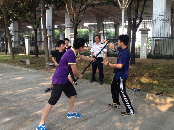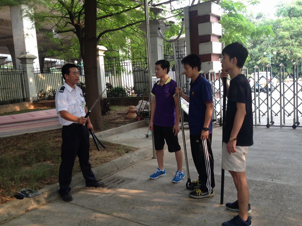 保安队副队长郝建德详细介绍了各种防暴器械的使用方法并进行了现场演示。通过学习,男教师已经能够掌握这些防暴器械的使用方法,提高了安全防暴实际操作能力。