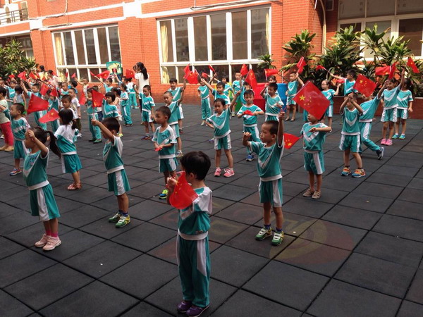 “加油!加油!”9月30日上午,花城幼儿园的操场上一片欢腾,这里正在举行大班年级“运动宝宝庆国庆”运动会。国庆节来临之际,花城幼儿园以大班“阳光体育”活动为契机,深入开展庆国庆“我为祖国妈妈过生日”活动,从小培养孩子热爱祖国的美好情感。在嘹亮的国歌声中,庆国庆运动会拉开了序幕,老师和小朋友一起庆祝我们伟大的祖国65华诞,一起祝福祖国更加繁荣昌盛!