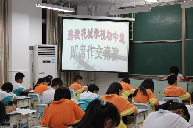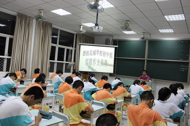 比赛中,学生们信心十足,认真审题,托腮凝思,文思泉涌,奋笔疾书,文采流溢,用生花妙笔尽情抒写自己的真情实感。