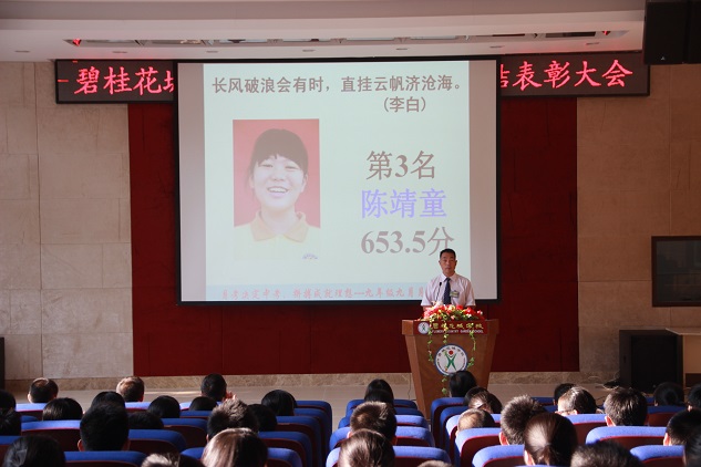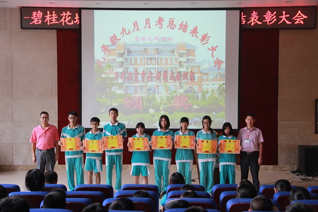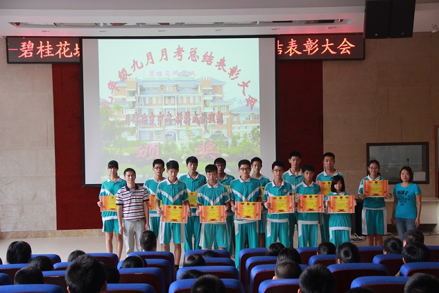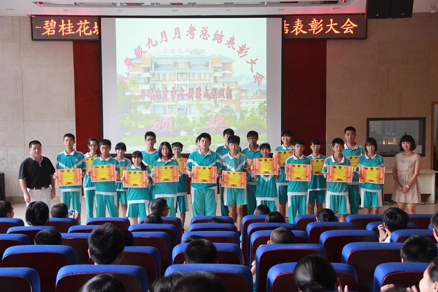 2014年10月9日下午,我校九年级全体师生在学术报告厅召开了第一次月考表彰大会。会议由九年级级长代天良主持,校长助理谭家文主任参加了会议。