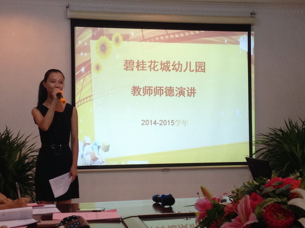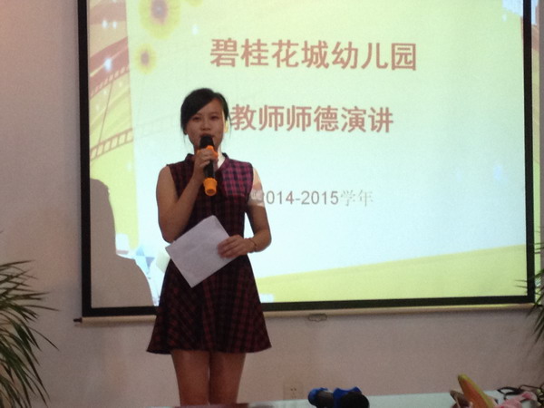 10月8日晚,碧桂花城幼儿园举行师德演讲比赛,8名幼儿教师参赛。
