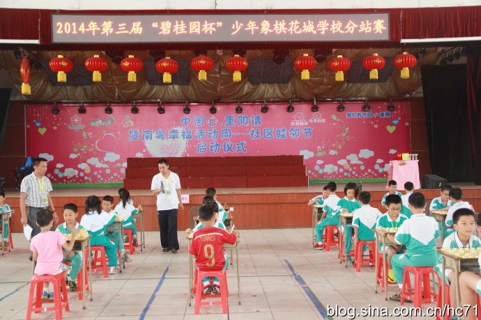 10月14日下午,第三届“碧桂园杯”少年象棋花城学校分站赛在我校综合馆隆重举行,束轩副校长出席活动并作了动员讲话。