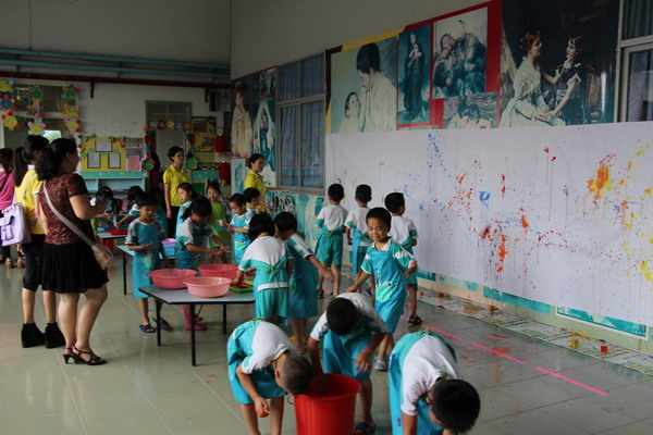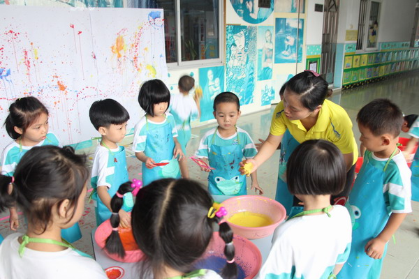 看!大一班的Miss 刘带着孩子们一起探索蝴蝶的一生,让孩子们懂得了只有通过自己不懈的努力才能取得成功;大二班的Miss陈带着孩子们走进绘本,一起领略绘本精美的“图画语言”;大三班miss汪带着孩子们一起跟颜色玩游戏,孩子们对颜色的搭配和敏感度受到了同行们的一致称赞;大四班的Miss伍领着孩子一起进行护蛋,让孩子们一起感悟生命。整个活动孩子们都非常积极地参与,寓教于乐,寓教于学,孩子们的投入以及老师们教学的严谨给前来参观的同行们留下了深刻的印象。