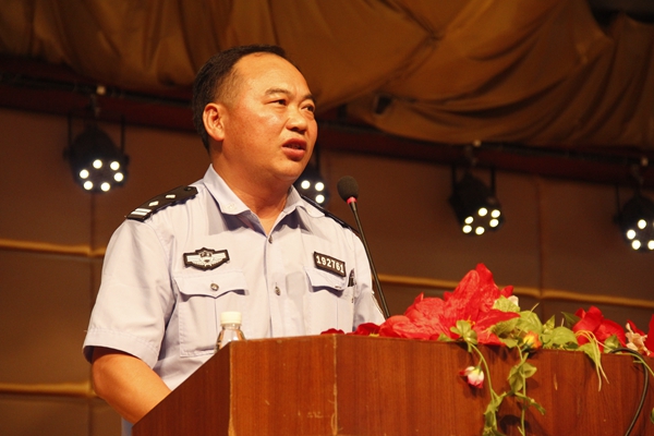 随后,花城社区警务室警察叔叔,花城学校法制副校长周警官为我们作法制安全、防溺水安全教育宣讲。周警官从打架斗殴、盗窃、毒品、上网、消防、溺水、交通这七个方面对学生进行了教育。他要求同学们要时刻敲响安全的警钟,要遵守国家的法律、法规,遵守学校的校纪、校规,学法知法强素质,守法用法护平安。