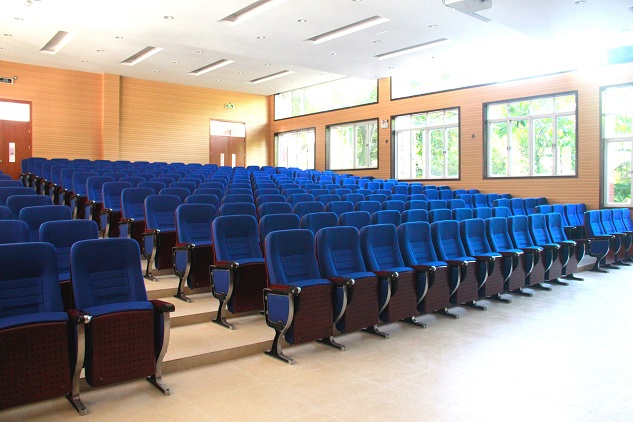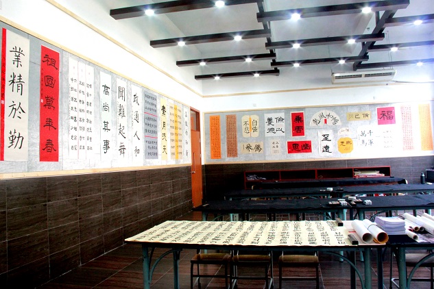 一路观景一路行,不觉就到了阶梯教室。如今的阶梯教室配备了最先进的灯光、影音设备,装置了中央空调。刚刚走进,就被它的豪华恢弘所折服。四百多平米的内厅辉煌大气,整洁的地面,高档的沙发,无不给人留下深刻的印象。前方的墙壁上铺着纹路复杂、淡雅高贵的大理石,其余几面墙壁则充满自然气息,如同树木年轮般的花纹代表着花城一路走来的岁月沉淀;雪白的天花板上镶嵌的“水晶灯”光彩夺目,重新安装的木质大门庄严肃穆。一楼的美术室与书法室也不遑多让,全新的桌椅,崭新的墙壁,充满艺术性的天花板装饰着艺术家的梦。简单的曲线勾画出迷人的轮廓,高雅的悬灯彰显着醉人的韵味。