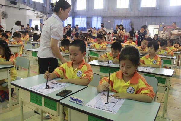 9月5日,我校为上学才一个星期的一年级新生举行了一场别开生面的“开笔礼”。