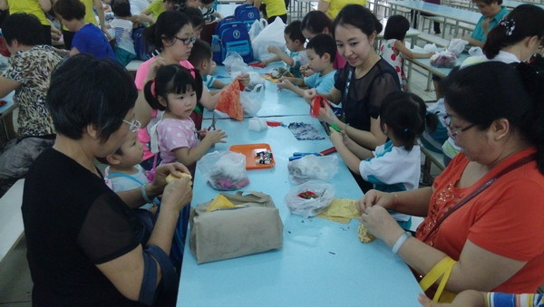 本次的庆祝活动分两部分进行:家长故事表演会和现场亲子缝香包活动。家长故事表演会中,家长们都精心编排了很多经典童话和新颖有趣的故事,有《白雪公主》《狼来了》、《假期的我》、《聪明小鸡笨小狼》等,生动有趣的故事表演深深吸引了孩子们,大家看得津津有味。在“缝香包、迎端午”的活动中,由于孩子们年龄小,还不能一针一线地缝制,但是一双双小手可都没有闲着,帮爸爸妈妈递剪刀,将混有香料的中药塞进包里等,忙得不亦乐乎。随后,孩子们还将自己与父母一起制作的香包带回家里。