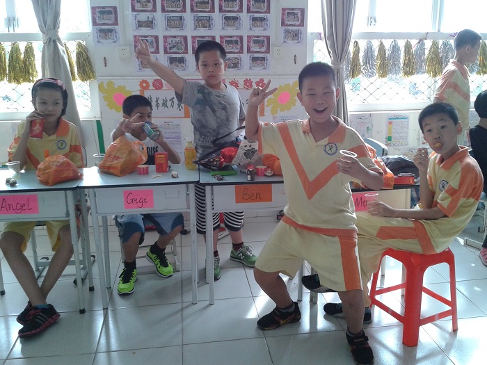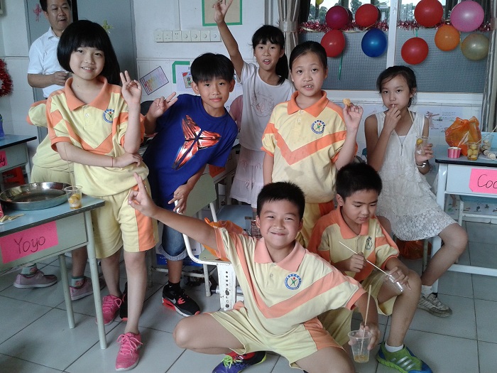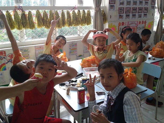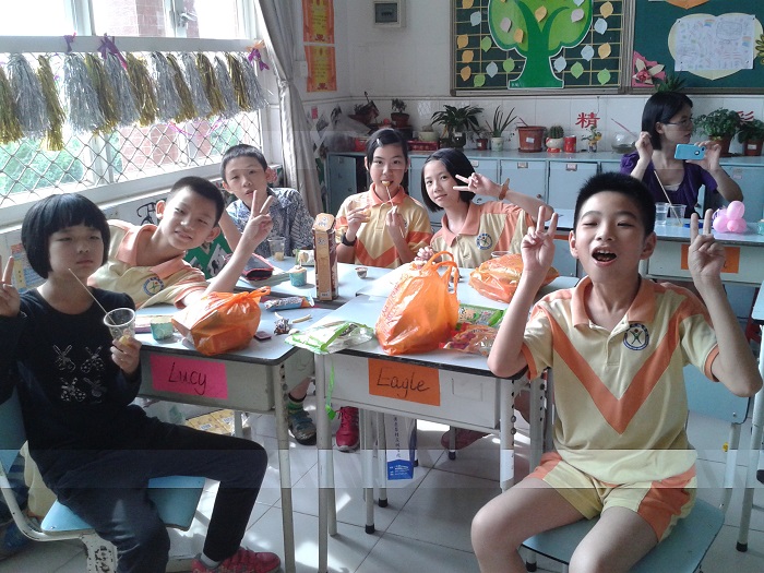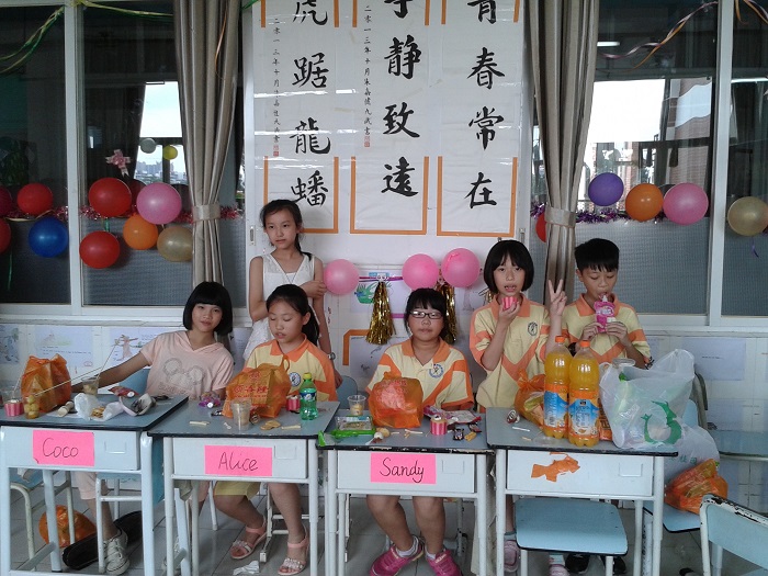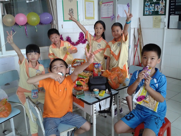 另外,此次为了感谢家委会的辛勤付出,我们特别邀请了家委会的九位成员来参加我们的庆祝活动。家委会的爸爸妈妈除了共同参与我们的节目外,还精心准备了很多手工制作的美食,像心然妈妈做的精美蛋糕、舒扬妈妈做的千层糕、区颖诗爸爸做的爱心鱼蛋、区均豪奶奶做的陈村玉米饼和可乐鸡翅等。还有孩子带来了很多的零食,大家互相分享美食,开心度过这个下午。