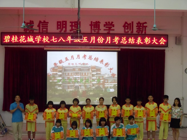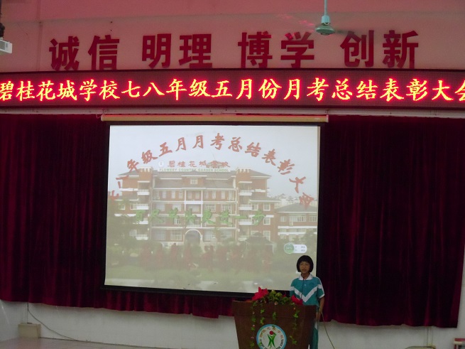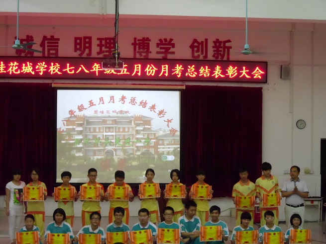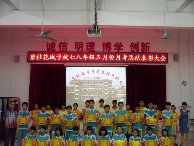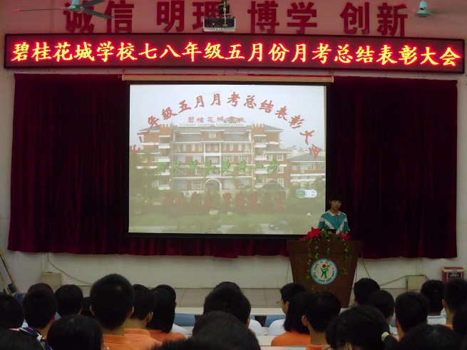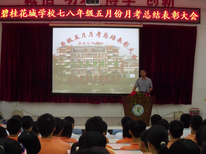 2014年6月5日晚,我校七、八年级全体师生欢聚在阶梯教室,隆重举行了五月月考表彰大会。