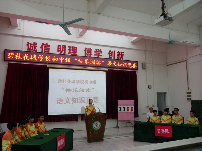 6月6日下午4点,由初中语文备课组主办的“快乐阅读”语文知识竞赛在阶梯教室落下帷幕。经过激烈的角逐,“书香”代表队最终在风险题反败为胜,勇获冠军,“翰墨”队获得亚军。