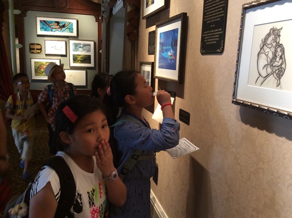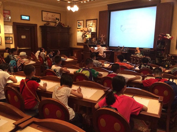 We followed Michele in Disneyland. She took us to a classroom named “Disney movie classroom”. A teacher there taught us how to draw a Winnie the Pooh. I drew an ugly one.