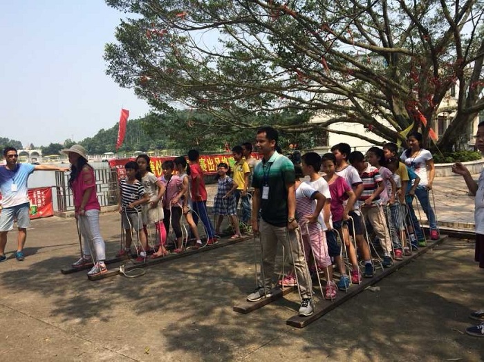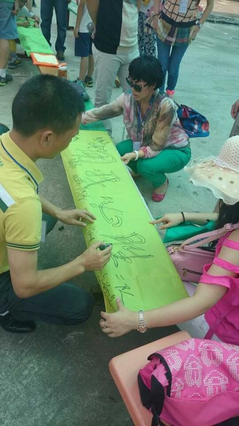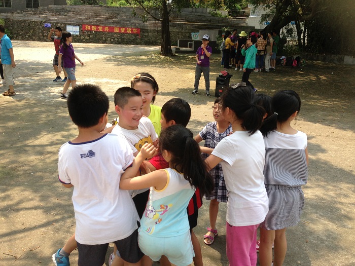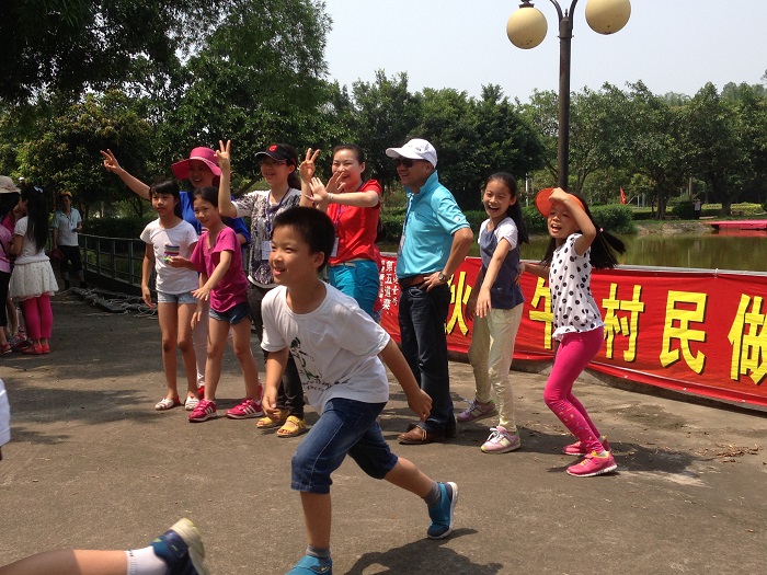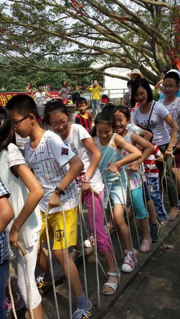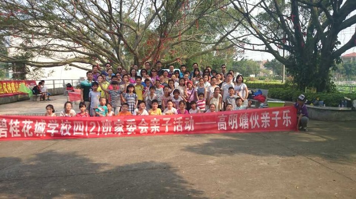 6月14日,艳阳高照。四(2)班学生、家长和老师共70余人分乘两辆大巴来到了高明塘伙生态乐园。本次亲子活动分为四个部分:首先是“破冰小游戏及团队展示”,在这个环节孩子们和家长们分别组好队,并共同制定组名、口号、队歌;然后是“绿野迷踪―夺宝奇兵”,通过之前亲子间的沟通,孩子们追寻着家长们的足迹快乐寻宝;接下来是“亲子运动会”,亲子共同参与了风雨同路、同心鞋、大八脚等运动游戏;最后是展示竞赛结果并颁奖。家长和孩子们在这些精心设计的亲子游戏中,互相配合、团结合作、尽情玩乐。家长们的积极参与让孩子们感到无比的快乐,孩子们的快乐更是让家长们享受到了亲子间未曾有过的幸福。在一阵阵的欢笑声、呐喊声中亲子活动达到了沸点。