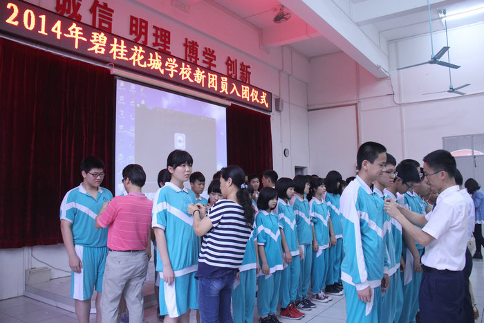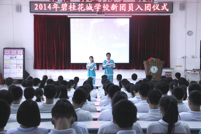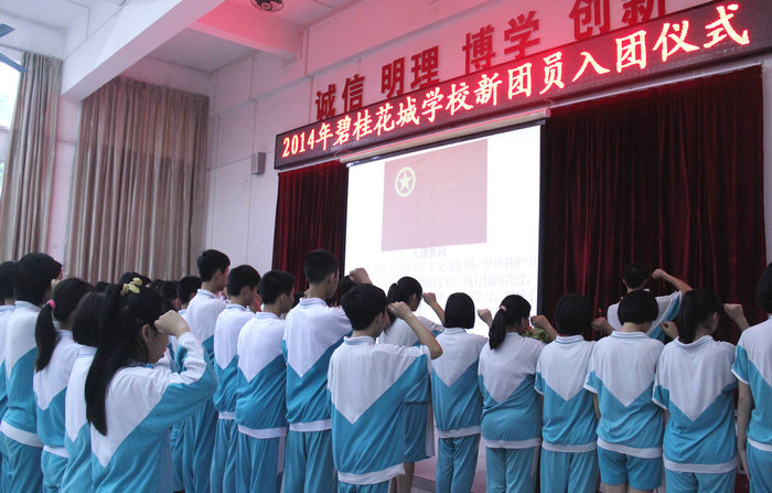 仪式在庄严的国歌声中开始,首先观看了《碧桂花城学校2013年团队工作总结》专题片,近十分钟的视频,回顾了我校去年的团队工作开展情况及取得的成绩,博得了一片赞许的掌声。